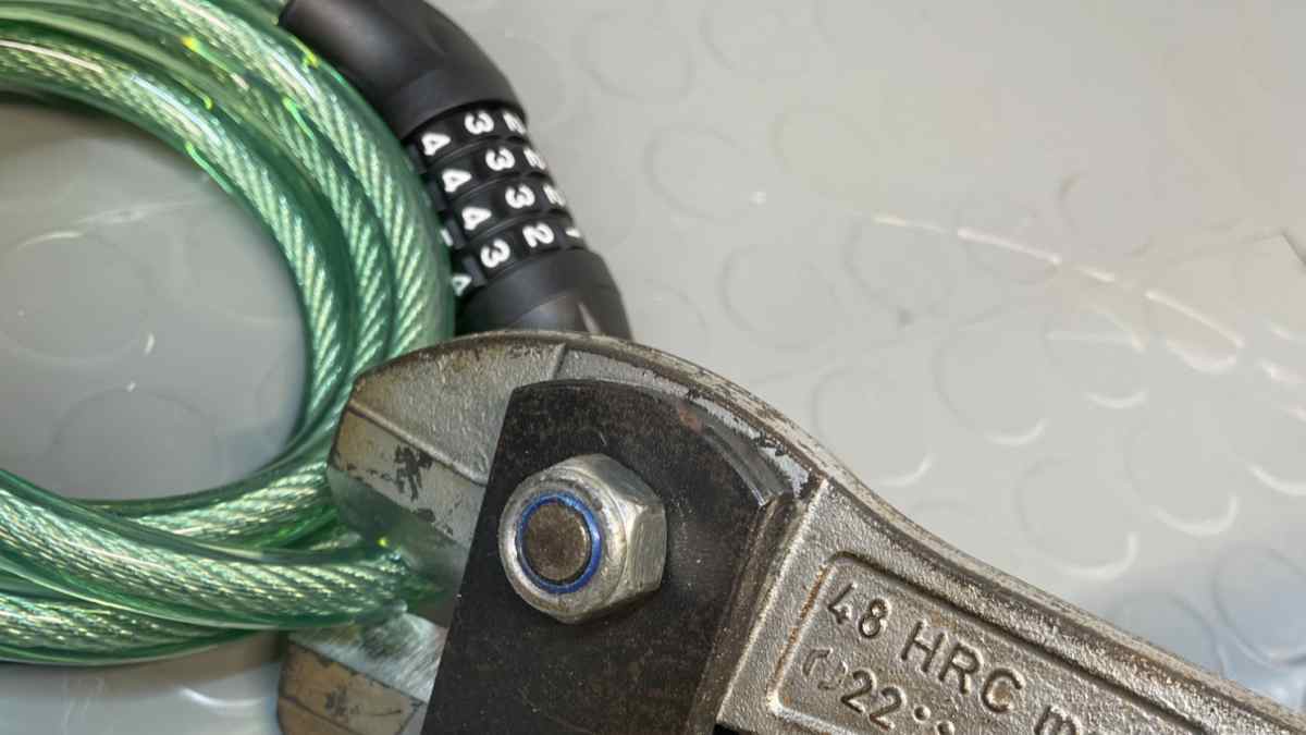 Ein Fahrradschloss soll das geliebte Bike vor dreisten Dieben schützen. Also auch solchen, die das Rad wirklich klauen wollen. Wer sich für ein dickes Kettenschloss entscheidet, glaubt oft, ein besonders sicheres Schloss zu haben. Auch das Crivit‑Zahlenschloss mit Kette wirkt, als könne es brutalen Aufbruchversuchen etwas entgegensetzen, ist aber auch verdächtig leicht. Wir wollten wissen, was das Kettenschloss unter seinem Plastikmantel wirklich aushält und haben den Bolzenschneider angesetzt.