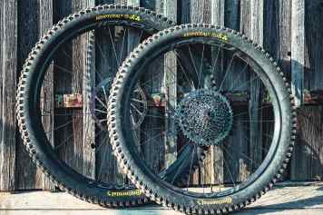 Die Laufräder bestehen aus Schürmann YAK19 Disc Aluminium Hohlkammerfelgen mit Continental Contact Plus Reifen in der Größe 47-622. Die Naben sind Shimano Deore, was zusammen mit den Niro 2 mm Speichen einen robusten Laufradsatz in der Größe 28" ergibt. Der Sattel ist ein Selle Royal Essenza, montiert auf einer Humpert Ergotec Atar Sattelstütze.